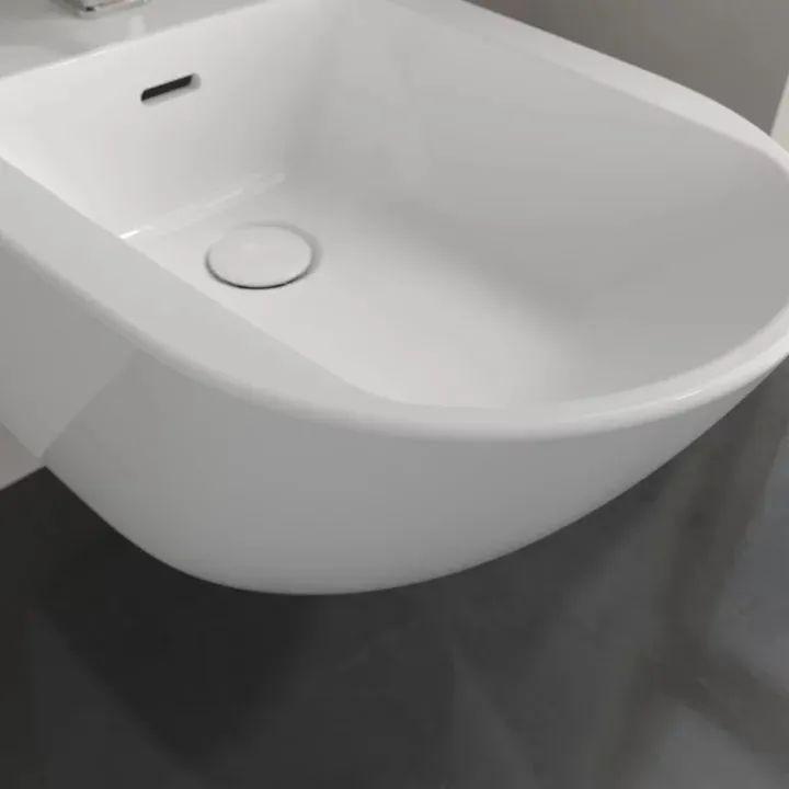 Подвесные биде представлены в различных вариантах дизайна. Они подвешиваются непосредственно на стену. Для этого необходим пристенный монтаж, который во многих новостройках уже предусмотрен. Преимущество. Удобнее мыть пол под биде. Подвесные биде Villeroy & Boch сочетаются с подходящими унитазами.- Различные возможности применения для ежедневной интимной гигиены, мытья ног и пр.