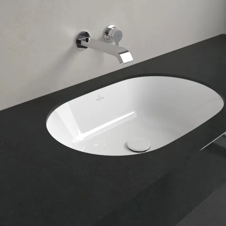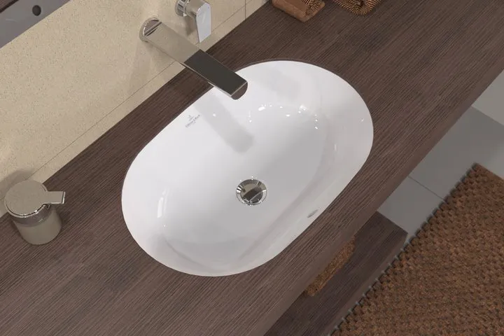 При использовании раковины под столешницу комбинация раковины и столешницы для ванной кажется монолитной. На выбор предлагается круглая, овальная и прямоугольная санитарная керамика в различных тонах.- Раковина безупречно вписывается в столешницу; такое объединение обеспечивает максимальную функциональность