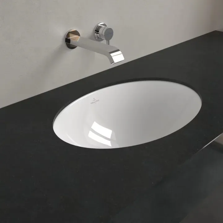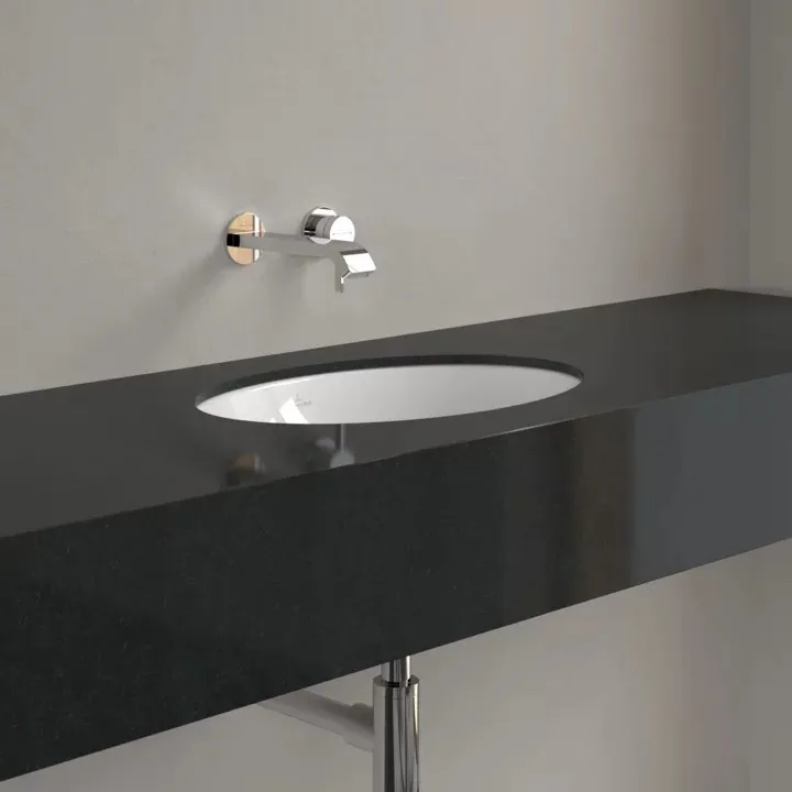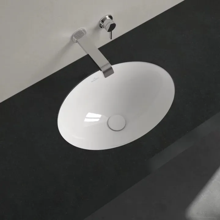 При использовании раковины под столешницу комбинация раковины и столешницы для ванной кажется монолитной. На выбор предлагается круглая, овальная и прямоугольная санитарная керамика в различных тонах.- Раковина безупречно вписывается в столешницу; такое объединение обеспечивает максимальную функциональность