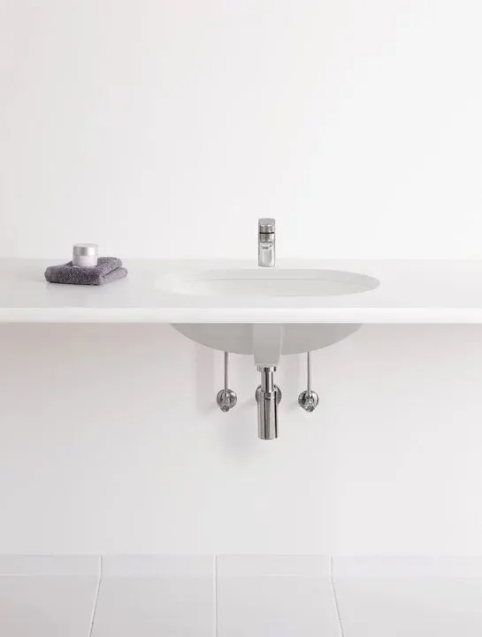 При использовании раковины под столешницу комбинация раковины и столешницы для ванной кажется монолитной. На выбор предлагается круглая, овальная и прямоугольная санитарная керамика в различных тонах.- Раковина безупречно вписывается в столешницу; такое объединение обеспечивает максимальную функциональность