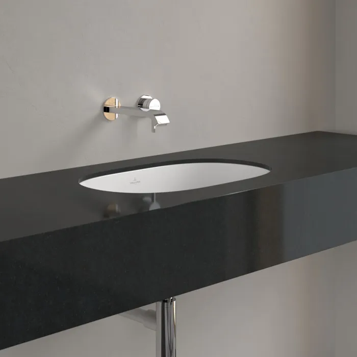 При использовании раковины под столешницу комбинация раковины и столешницы для ванной кажется монолитной. На выбор предлагается круглая, овальная и прямоугольная санитарная керамика в различных тонах.- Раковина безупречно вписывается в столешницу; такое объединение обеспечивает максимальную функциональность