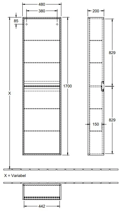 Villeroy & Boch Antheus Шкаф-пенал, 2 двери, 480 x 1700 x 200 mm, Black Ash B06801PW