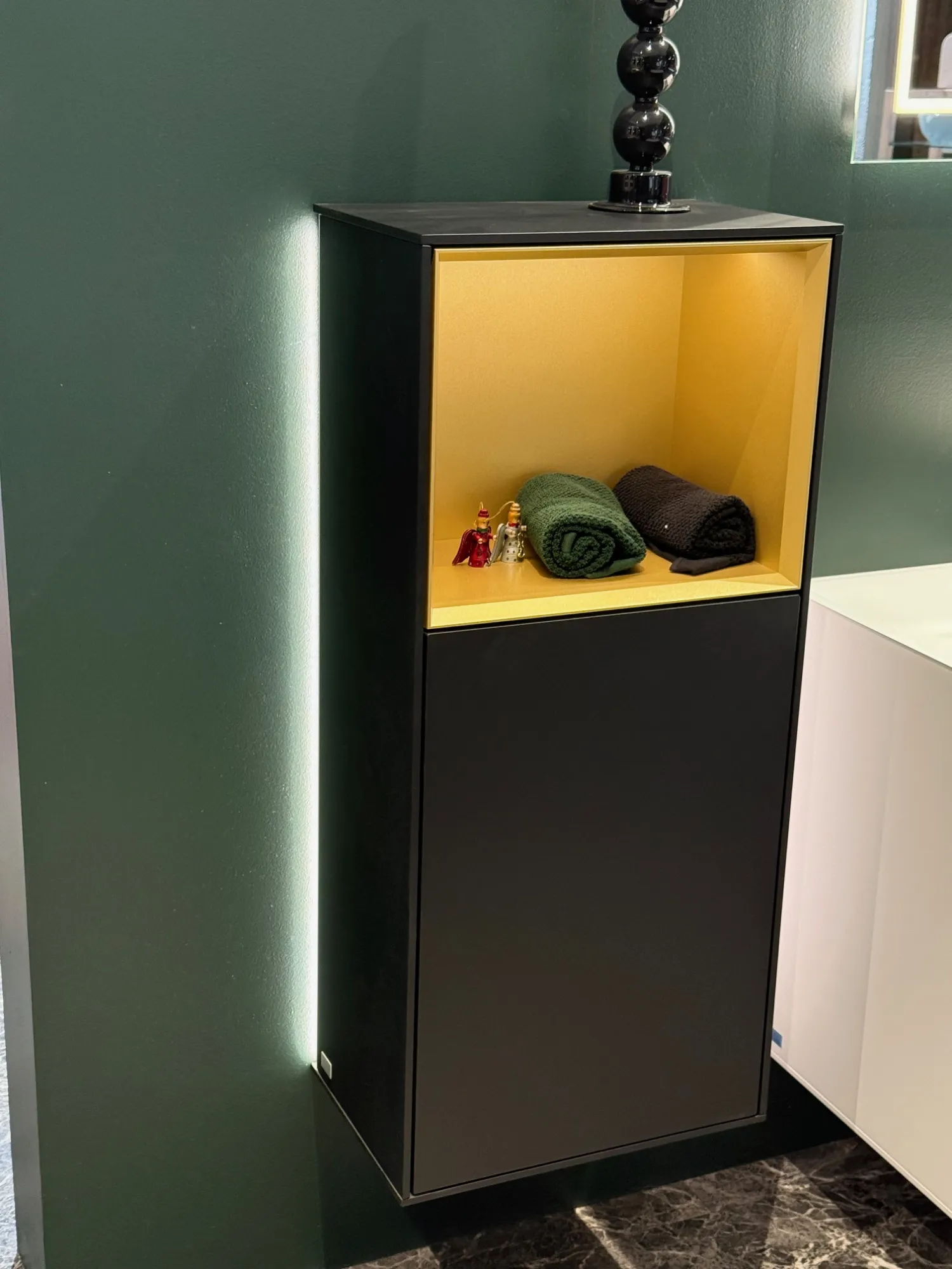 Villeroy & Boch Finion Шкаф Боковой, с подсветкой, 1 дверь, 418 x 936 x 270 mm, Black Matt Lacquer / Gold Matt Lacquer G500HFPD