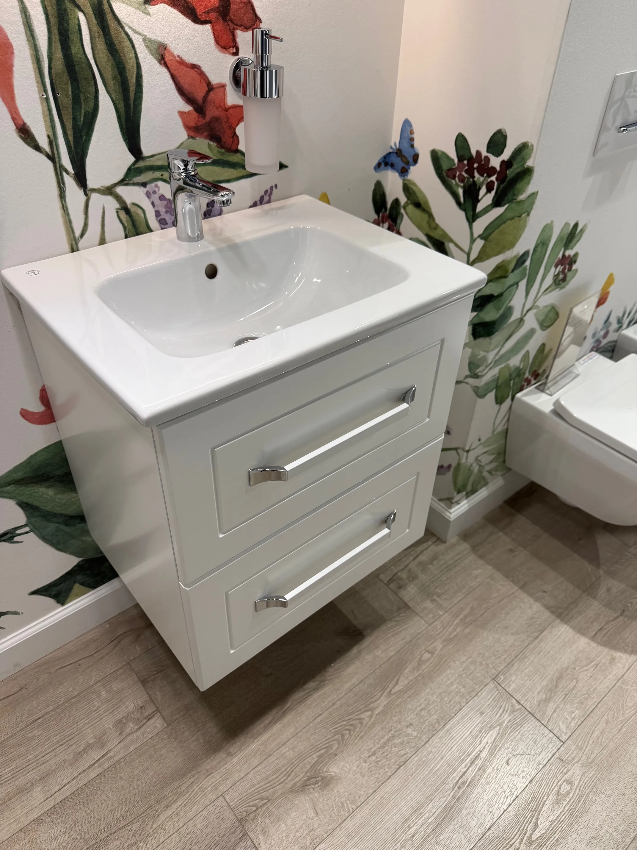 Гарантия 1 год Страна производитель Германия Материал фасада МДФ Материал корпуса МДФ Материал верхней панели МДФ Материал другое Ручка: Алюминий Обозначение цвета корпуса Белый Форма Прямоугольные версии Поверхность фронтальная Лак Поверхность корпуса Лак Поверхность верхней панели Лак Комплект поставки 1 x тумба под раковину 1 x крепежный комплект 1 х раковина Установка Настенный монтаж Функция с функцией SoftClosing С ручками да Тип ручек Ручка С подсветкой нет Расположение раковины раковиной, устанавливаемой в центре Состояние установки смонтировано Тип отрытия 2 выдвижных ящика Общая информация Комплект состоит из тумбы + раковина Белая матовая Старая цена 75000 Коллекция Scandinavic Задать вопросВы можете задать любой интересующий вас вопрос по товару или работе магазина.