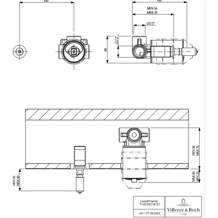 Villeroy & Boch Dawn Универсальный корпус для скрытого монтажа однорычажного смесителя TVW10611B15076