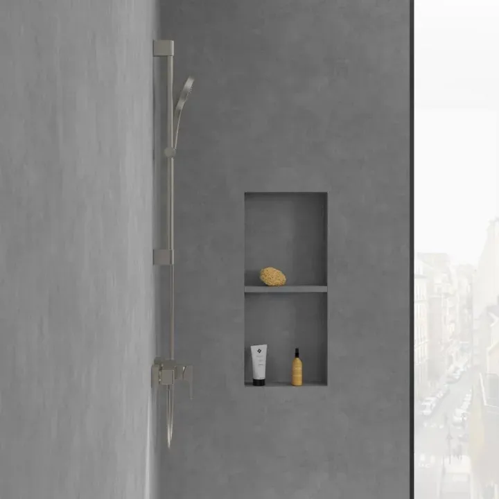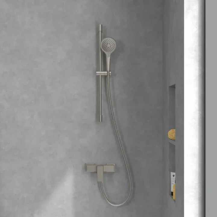 Накладные смесители — удобное и практичное решение для ванной. Смесители, штанга для душа и, при наличии, термостат находятся на виду, их легко мыть. Такой вариант монтажа особенно прост. Модели скрытого монтажа идеально подходят для новостроек.- Напор воды и режим струи легко регулировать