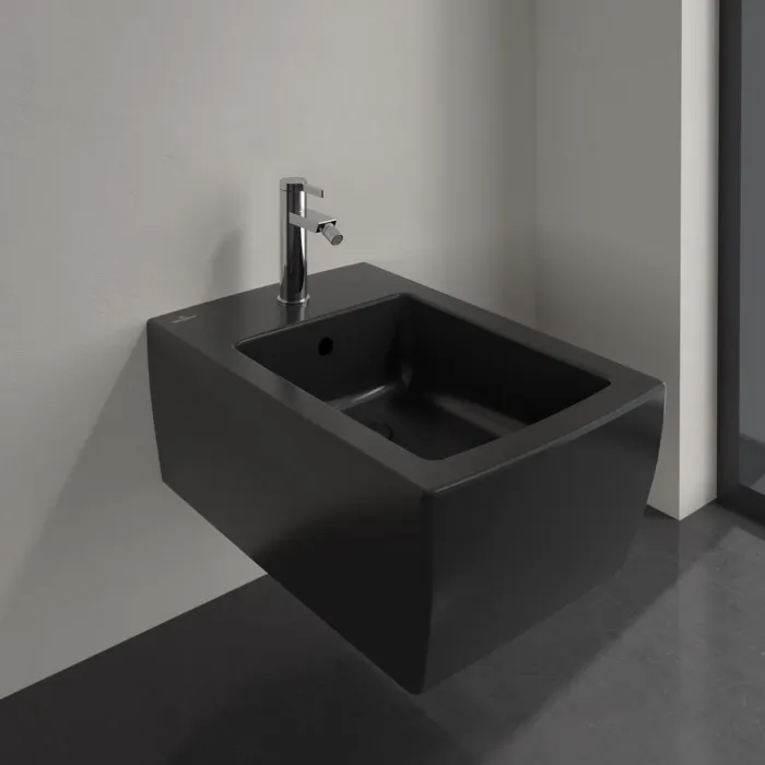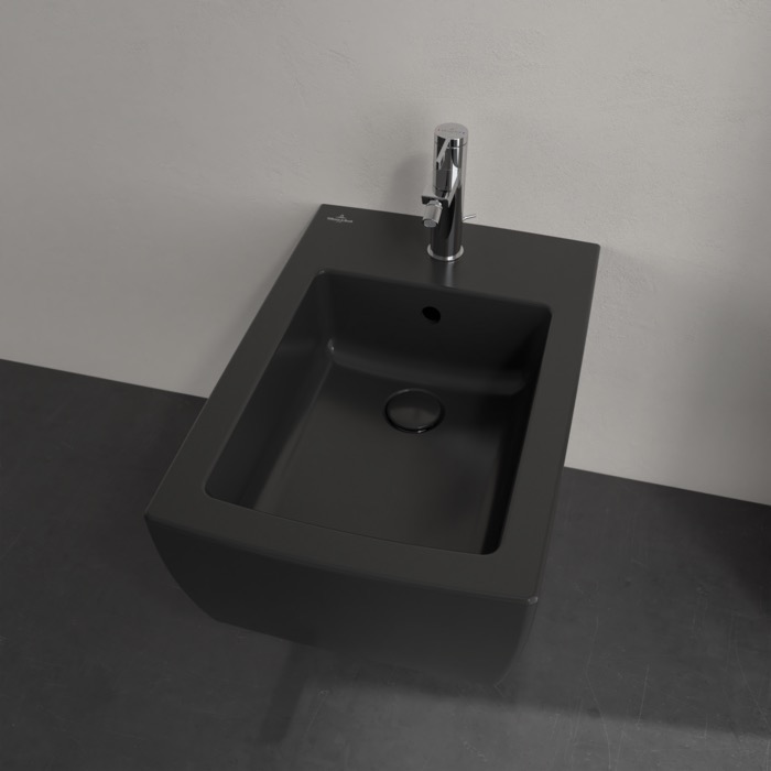 Villeroy & Boch Memento 2.0 Унитаз с открытым смывным краем, настенный, смыв DirectFlush, Pure Black CeramicPlus + Сиденье + Биде