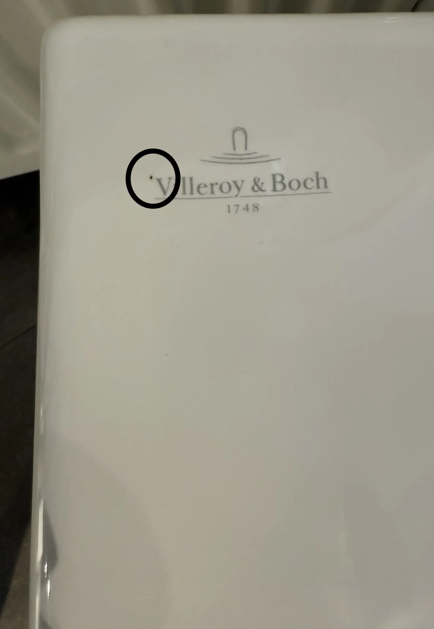 "Точка" на внешней чаше биде 0,1 мм у логотипа и точка с краю 0,1 мм будет при установке закрыто силиконом.