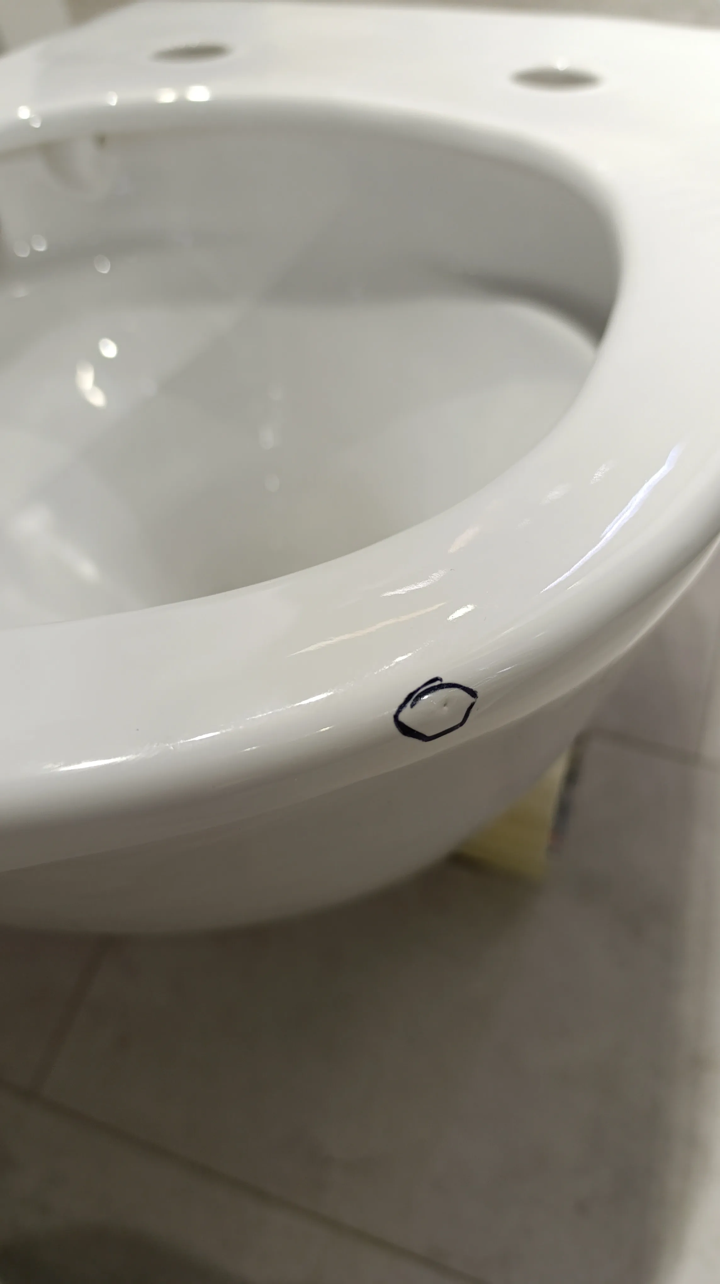 Дефект эмали ~ 1,2мм ободке (если смотреть на унитаз)