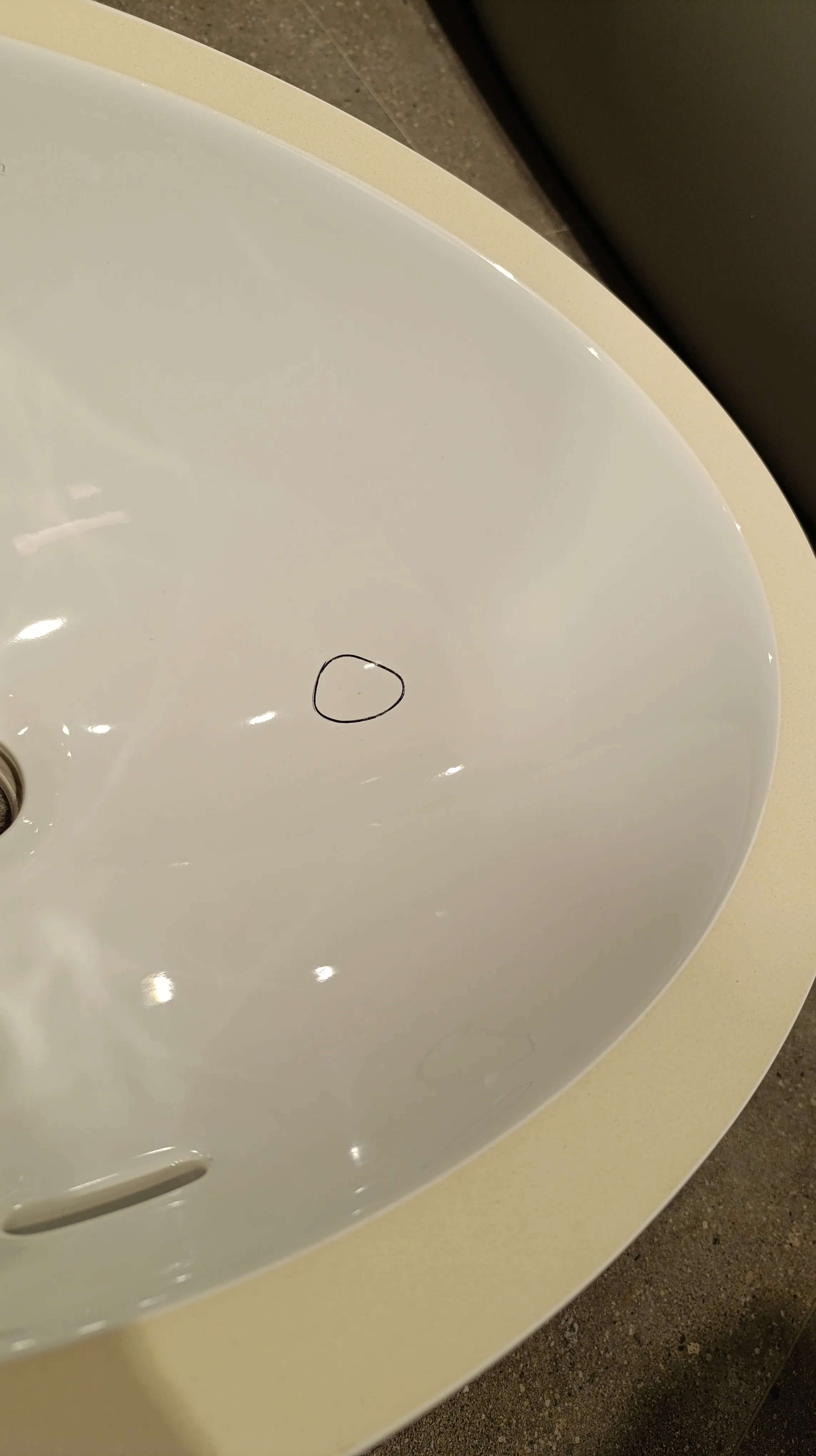 Дефект эмали ~ 1мм на эмали раковины