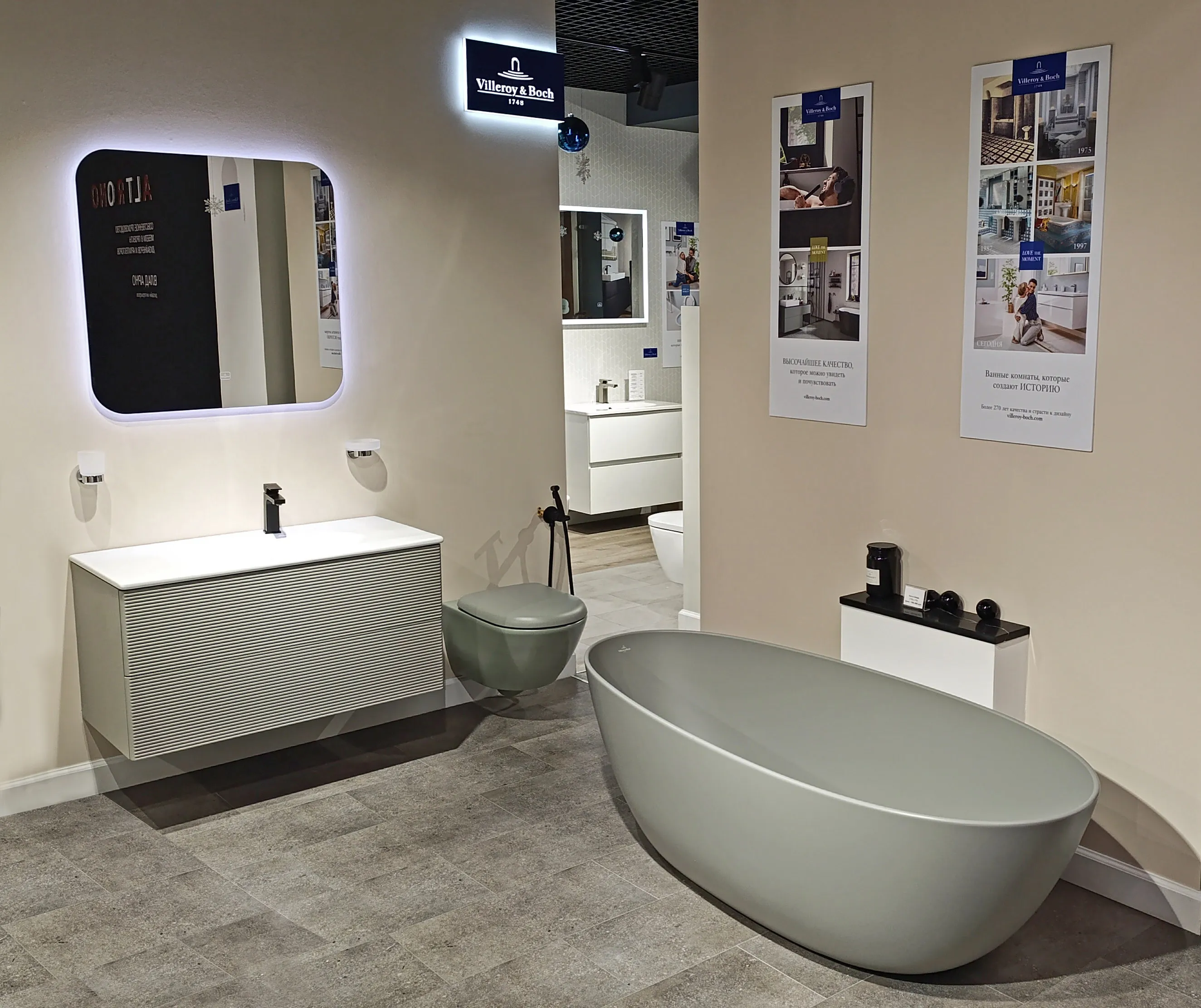 В шоурумах представлены новинки и бестселлеры легендарного немецкого бренда: ванны, сантехнический фарфор, смесители, душевые системы, мебель для ванных комнат, аксессуары — к вашим услугам весь спектр решений для создания стильного и функционального пространства ванной комнаты.