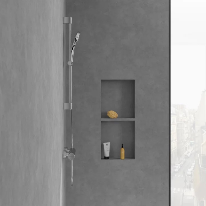 Накладные смесители — удобное и практичное решение для ванной. Смесители, штанга для душа и, при наличии, термостат находятся на виду, их легко мыть. Такой вариант монтажа особенно прост. Модели скрытого монтажа идеально подходят для новостроек.- Напор воды и режим струи легко регулировать