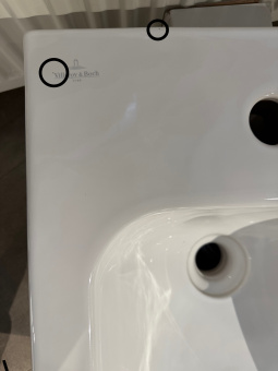 "Точка" на внешней чаше биде 0,1 мм у логотипа и точка с краю 0,1 мм будет при установке закрыто силиконом.